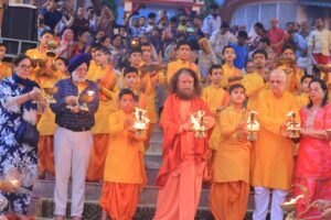 गंगा आरती के दौरान उपस्थित श्रद्धालुओं एवं ऋषिकुमारों ने “भारत माता की जय” और “कैप्टन शुभांशु जिंदाबाद” के नारों के साथ आशीर्वाद व शुभकामनाएं अर्पित कीं।