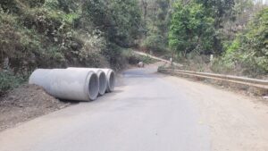 नीलकंठ मोटरमार्ग पर लापरवाही: रत्तापानी के पास सड़क किनारे रखे सीमेंट पाइप बन सकते हैं हादसे का कारण